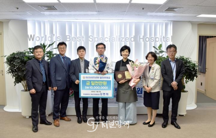 민정준 병원장은 “지역사회에서 따뜻한 마음으로 병원의 발전을 응원해주신 김현희 대표께 깊이 감사드린다.”며 “후원금은 병원의 연구, 교육, 환자 돌봄 등 다양한 분야에 소중히 사용하겠다.”고 말했다.