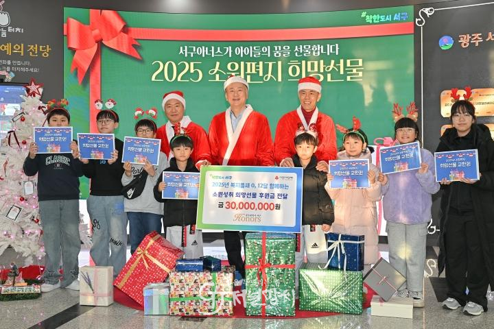 ![]() 광주 서구는 3일 서구아너스로부터 지역 아동‧청소년을 위한 ‘소원성취 희망선물’ 후원금 3000만원을 전달받았다고 밝혔다. /광주 서구 제공 |