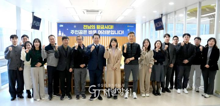 김영록 지사는 “전남도는 AI와 에너지 대전환의 중심지로 급부상하며, 단군 이래 최고의 황금시대를 열어 가고 있다”면서 “이런 성과는 직원들의 끊임없는 노력과 창의적 아이디어가 있었기에 가능했다.”고 격려했다.