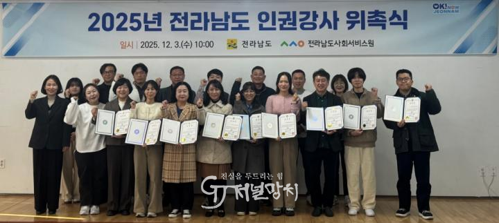 심재명 전남도 자치행정과장은 “인권은 법과 제도만으로는 실현될 수 없으며 교육과 실천이 함께해야 한다.”면서 “인권강사가 도민 곁에서 인권의 가치를 일깨우고, 누구나 존중받는 전남을 만드는데 핵심 역할을 해주길 바란다.”고 말했다.