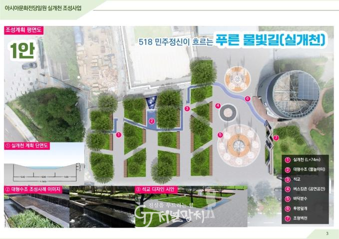 ![]() 아시아문화전당일원 실개천 조성사업 평면도 /광주광역시 제공 |