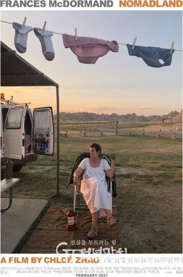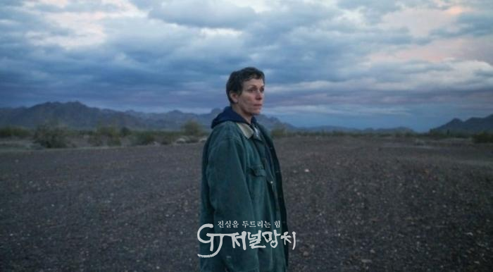 영화 <노마드랜드>는 제시카 브루더(Jessica Bruder)가 쓴 논픽션이 원작이야. 펀을 연기한 프란시스 맥도먼드가 제작과 기획을 맡았는데, 중국 출신 클로이 자오에게 감독을 맡겼지. 클로이 자오는 이 영화를 통해 노마드의 삶을 해석하려 들지 않았다는 것이 그녀의 특출함일지도 몰라. 고찰(考察)하는 영화의 ‘펀’이라는 인물은 다른 인물들과 달리 만들어진 캐릭터인데, 그녀의 불가피한 삶의 여정을 멀찍이 바라보듯 뒤쫓는 영상 때문에 다소 덤덤하게 보이는 한 영화였어.