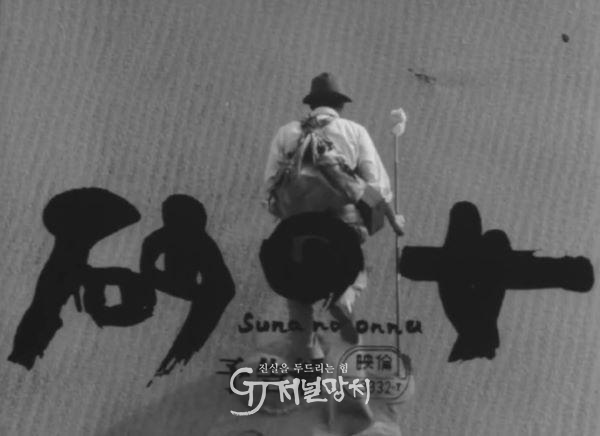 친절한 얼굴을 한 마을 사람들의 안내에 따라 모래구덩이 속 어느 과부의 집으로 들어가는(내려가는) 사내. 자신의 그물이 실은 저 거대한 그물 속이라는 걸 미처 깨닫지 못한 사내는 우산을 써야 하는 기이한 저녁 식사를 하고, 모래이불을 덮으면서도 구덩이 바깥의 무구한 여정을 전혀 의심하지 않는다. 모든 게 당연했던 것이다. 그에게 하룻밤을 흔쾌히 허락한 집주인 <모래의 여자>도 마을 사람들이 제공해주는 식료품과 일상적인 행색도 당연해 보인다.