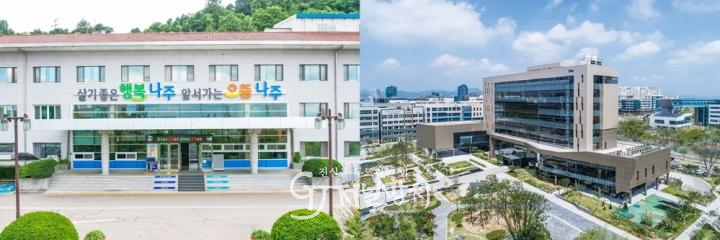 ![]() 나주시가 혁신도시 이전공공기관인 한국인터넷진흥원과의 협업으로 중소기업 정보보호 관련 예산 23억 원 증액을 이끌어냈다. 사진은 나주시청 전경(왼쪽)과 한국인터넷진흥원 전경(오른쪽) /나주시 제공 |