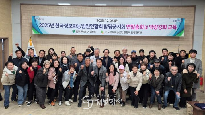 함평군은 9일 “한국정보화농업인연합회 함평군지회(이하 한정농)가 지난 5일 함평군농업기술센터 플라워푸드다목적홀에서 회원 50여 명이 참석한 가운데 ‘2025년 연말총회’를 성황리에 개최했다.”고 밝혔다.