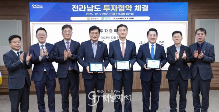함평군은 지난 9일 전라남도청 서재필실에서 전라남도와 금호타이어가 함평 신공장 건립을 위한 투자협약을 체결했다고 10일 밝혔다. 협약식에는 김영록 전남도지사, 이상익 함평군수, 정일택 금호타이어 대표이사가 참석했다.