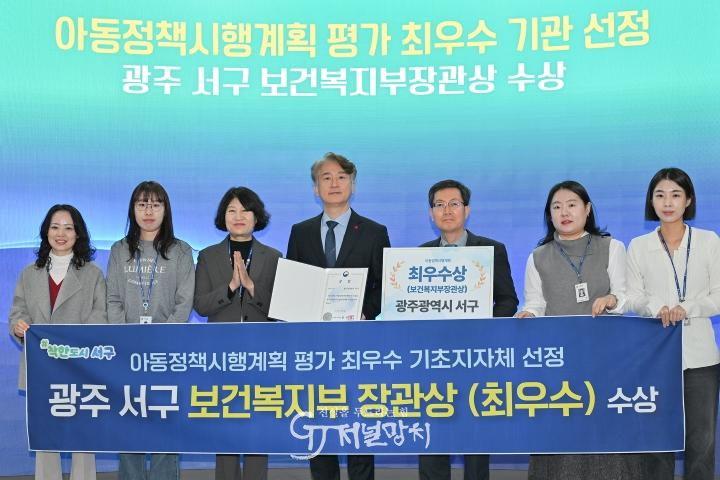 ![]() 광주 서구는 10일 보건복지부가 주관한 ‘아동정책시행 계획 추진실적 평가’에서 전국 최우수 지자체로 선정돼 보건복지부 장관상을 수상했다고 밝혔다. /광주 서구 제공 |