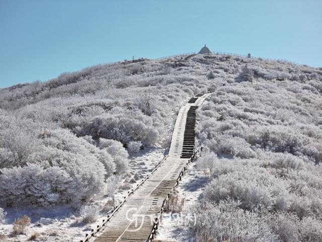 구례 지리산 노고단은 해발 1천507m 고지에 자리한 3대 주봉 중 하나다. 겨울이면 능선과 구상나무 군락이 하얀 설원으로 장대한 파노라마를 이룬다. 상고대가 피어오른 숲과 눈 덮인 목초지, 구례 시내와 어우러진 섬진강 풍경은 환상적 분위기를 연출한다.