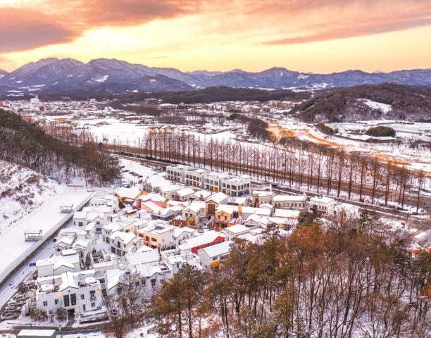 담양 메타프로방스는 메타세쿼이아 가로수길과 어우러진 유럽풍 마을로, 겨울이면 붉은 지붕과 알록달록한 건물 위로 눈이 내려 동화 같은 설경을 만든다. 메타세쿼이아 길 양옆으로 쌓인 눈과 포토존, 카페 거리의 조명이 어우러져 ‘남도의 작은 겨울 유럽’을 연출, 가족, 연인들의 여행지로 인기가 높다.
