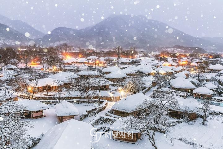 순천 낙안읍성은 조선시대 읍성과 초가집, 토성이 온전히 남아 있는 살아있는 민속 마을이다. 겨울이면 초가지붕과 성곽 위로 눈이 내려 고즈넉한 설원을 연출한다. 흰 눈이 덮인 돌담길과 굽이진 골목, 전통가옥 굴뚝에서 피어오르는 연기가 어우러져 한국적 정취가 물씬 풍기는 겨울 사진 명소다.