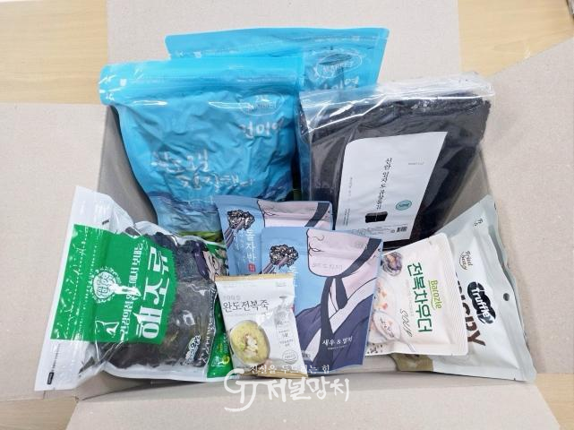수산물 꾸러미는 전남에서 생산한 수산물 중 곱창김, 전복죽, 다시마, 미역 등 7종 4만 원 상당으로 양질의 영양식이면서도 조리하기 간편한 수산가공품으로 이뤄졌다.