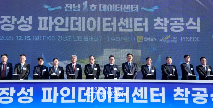 ![]() 김영록 전라남도지사가 15일 장성 남면에서 열린 ‘전남 1호 데이터센터, 장성 파인데이터센터 착공식’에 참석해 주요 내빈과 착공 퍼포먼스를 하고 있다. /전라남도 제공 |
