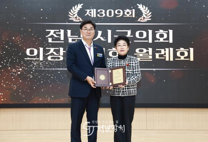 대한민국시군자치구의회의장협의회는 지난 12일 화순군의회에서 열린 제309회 전라남도시군의회의장협의회 월례회의에서 백인숙 의장에게 대한민국지방의정봉사상을 수여했다. 지방의회 발전과 주민 화합에 기여한 의정 성과를 전국 단위에서 공식적으로 인정받은 것이다.