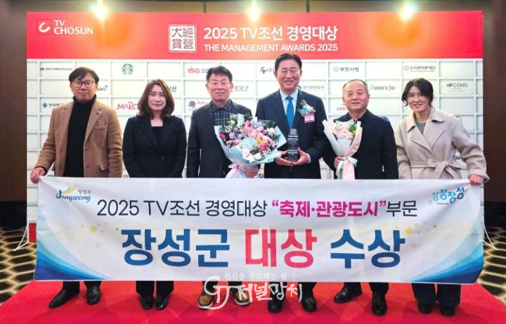 ![]() 장성군이 지난 12일 서울 더플라자호텔에서 열린 ‘TV(티브이)조선 경영대상’ 시상식에서 자치행정경영 축제·관광도시 부문 대상을 수상했다. /장성군 제공 |