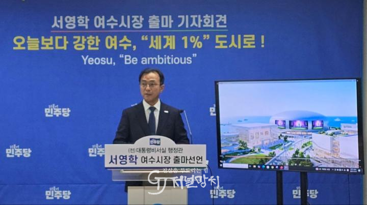 서 전 행정관은 16일 여수시청 브리핑룸에서 기자회견을 열어 ‘오늘보다 강한 여수, 세계 1% 도시로!’를 비전으로 제시하며 “‘떠나 보내는 여수에서, 내가 살고 싶은 여수를 만들겠다’는 다짐으로 이 자리에 섰다.”고 밝혔다.