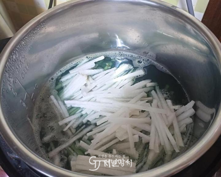 ![]() 끓여지는 중인 다슬기국 재료들. |