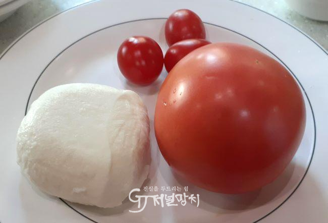 토마토의 라이코펜 성분을 높이려면 익혀서 먹는 조리법이 더 효과적이다. 오늘은 토마토를 손님상에 예쁘게 썰어서 놓는 카빙이기 때문에 많은 재료는 필요 없다.