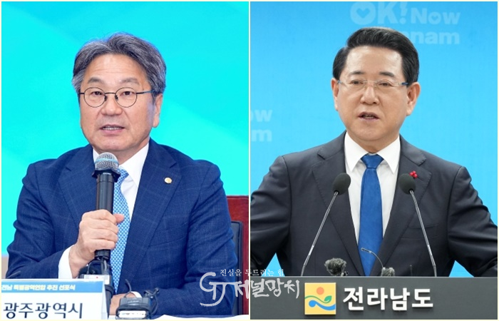 ![]() 강기정 광주시장(왼)과 김영록 전남도지사(오) |