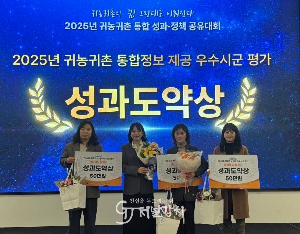 농림축산식품부 주관 귀농귀촌 통합정보 제공 우수 시군 평가에서는 귀농귀촌 관련 지원사업과 교육·체험 프로그램 정보를 체계적으로 제공해 예비 귀농귀촌인의 정보 접근성과 정책 활용도를 높인 점이 긍정적인 평가를 받으며 성과도약상을 수상했다.