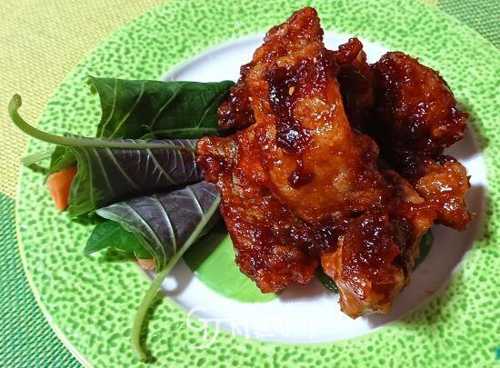 소스를 만들기 위해서는 고추장 1큰술, 케첩 2큰술, 조청 2큰술, 유자청 1큰술, 다진 마늘 1큰술, 땅콩과 통깨 약간이 필요하다.