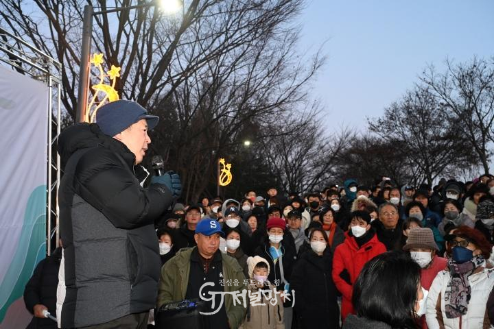 해맞이 행사에서는 식전 공연을 시작으로 새해 소망 나누기 및 소원 성취 퍼포먼스 등 다채로운 프로그램을 선보인다. 먼저, 식전 무대에서는 당일 오전 6시 30분부터 7시 10분까지 국립공원 무등산 너머로 붉은 기운의 태양이 떠오르기 전까지 풍물패의 신명 나는 공연을 비롯해 색소폰 연주, 마술 퍼포먼스가 50여 분간 펼쳐질 예정이다.