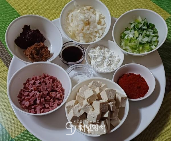 1. 두부는 작은 크기로 깍둑썰기하고, 소고기, 대파, 양파는 잘게 다진다.