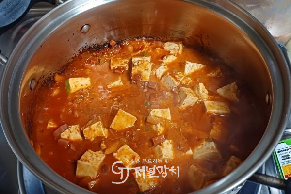 ![]() 각종 양념과 두부를 넣어 끓이는 과정. |