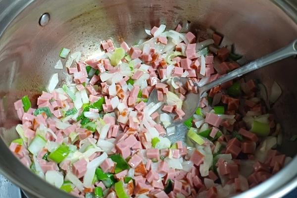 3. 볶는 재료가 익으면 물을 넣고, 된장, 고추장을 넣어 같이 끓인다.
