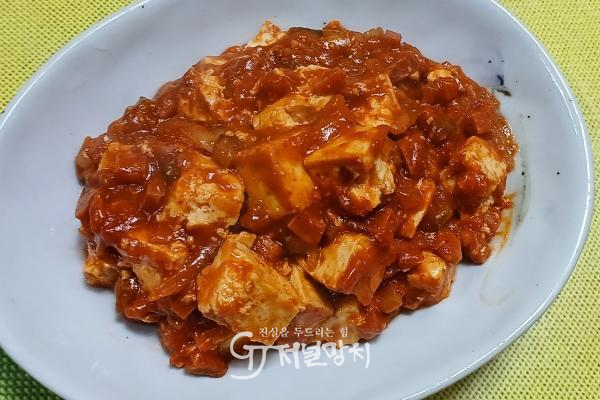 ![]() 완성하고 접시에 담아낸 마파두부. |