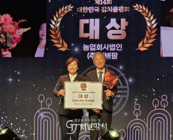 전라남도에 따르면 농림축산식품부와 한국농수산식품유통공사(aT)가 공동 주최한 국내 최고 권위의 김치 평가대회인 ‘대한민국 김치품평회’에서 장성의 ㈜새벽팜이 전체 대상을 받았다. 전통 발효기술과 철저한 품질 관리 역량을 인정받으며 전남 김치의 우수성을 전국에 알렸다.