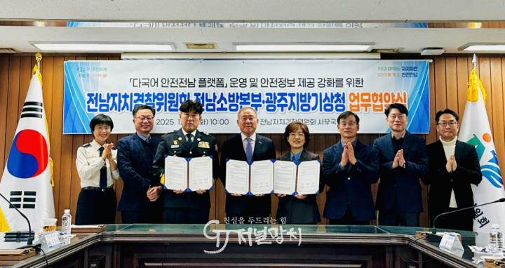 협약에 따라 전남자치경찰위원회는 다국어 안전전남 앱의 안정적 운영과 외국인 대상 안전정보 제공을 총괄하고, 전남소방본부는 화재·구조·구급 등 소방 관련정보를, 광주지방기상청은 폭염·한파·태풍·호우 등 기상특보 및 위험 기상정보를 실시간 제공해 앱의 정보 활용도를 높이게 된다.