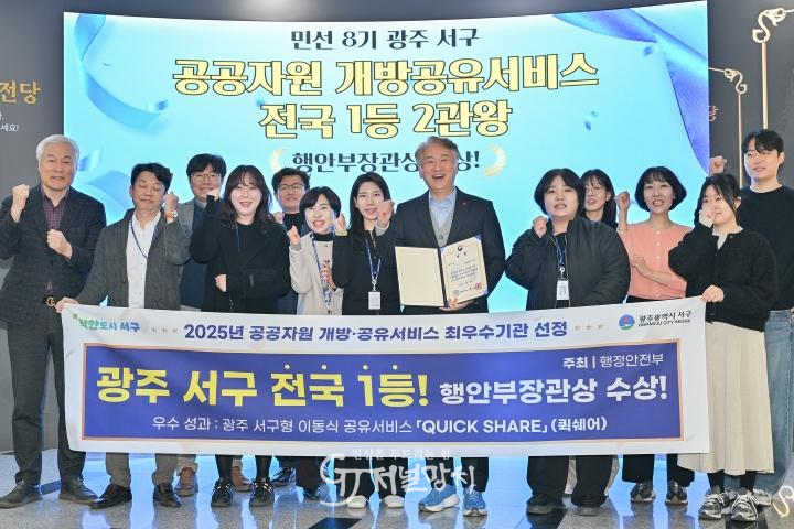 이번 평가는 전국 공공기관의 공공자원 개방 실적과 공유서비스 운영 사례 등을 종합적으로 심사해 우수 기관을 선정한 것으로 서구는 2023년에 이어 두 번째로 전국 1위에 오르며 민선8기 공유정책이 전국 최고 수준임을 다시 한 번 입증했다.