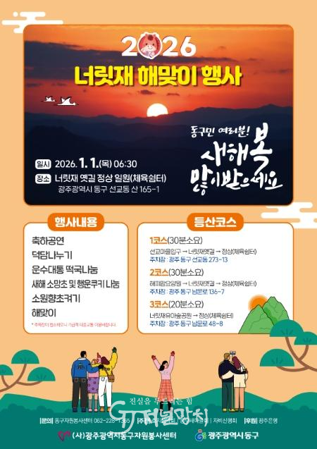 동구 관계자는 “너릿재에서 떠오르는 새해 첫 해를 바라보며 소망을 빌고, 따뜻한 떡국 한 그릇을 나누는 시간이 시민들께 큰 위로와 희망이 되기를 바란다. 행사 진행 순서 전반에 안전 관리와 질서 유지에 만전을 기해, 많은 시민들께서 편안하고 즐겁게 새해를 맞이하실 수 있도록 하겠다.”고 했다.