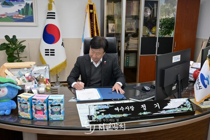 여수시장은 2일 집무실에서 청렴 실천 서약서에 직접 서명하고 ▲법과 원칙에 따른 공정한 직무 수행 ▲위법·부당한 업무지시 사전 차단 ▲직무 관련 부당한 이익의 철저한 배제 ▲투명하고 책임 있는 행정 실현 ▲시민의 눈높이에 맞는 시정 구현 등을 실천할 것을 약속했다.
