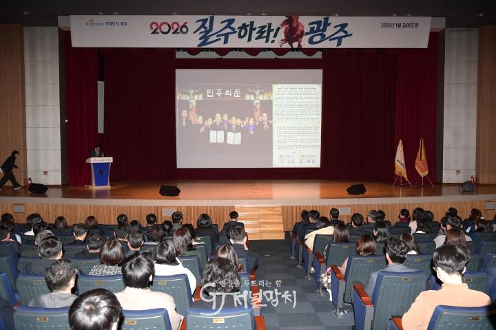 한편, 이날 정례조회에서는 공직자들이 동료 공직자의 내☆일이 빛나는 새해를 응원하기 위해 ‘걱정말아요 그대’ 연주 등을 선보였다. 또 대통령상 표창이 전달됐다. 광주시는 2025년 지난 한 해 동안 대통령상 7건, 국무총리상 2건, 장관급 이상 수상 21건 등 총 68건의 기관 표창을 수상하는 행정 혁신 성과를 거뒀다.