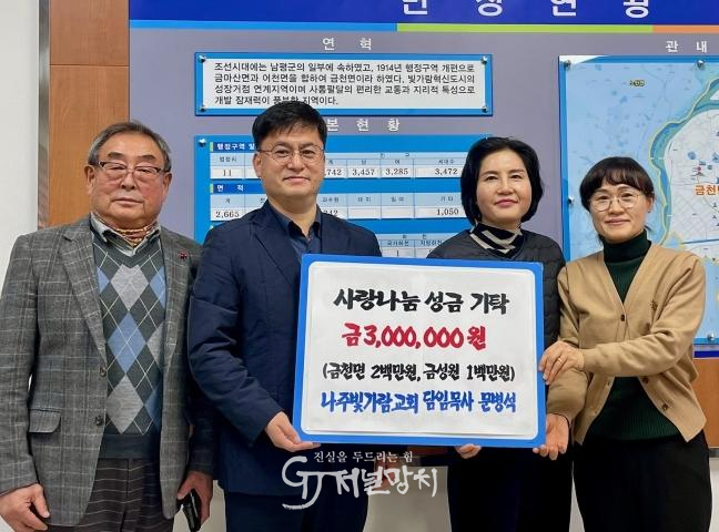 금천면은 월산리에 위치한 나주빛가람교회가 사랑나눔 성금 300만 원을 기탁했다고 5일 밝혔다.