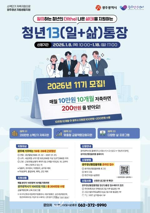 자세한 사항은 광주청년센터에 문의(062-372-5990)하거나 광주시 누리집 또는 광주청년통합플랫폼에서 확인할 수 있다.