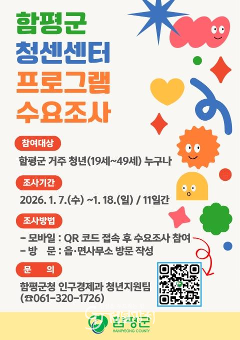군은 “이달 8일부터 18일까지 11일간 지역 청년을 대상으로 ‘2026년 청년센터 프로그램’ 수요조사를 실시한다”고 7일 밝혔다.