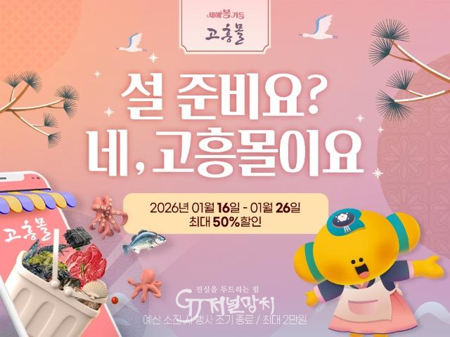 이번 기획전은 설을 앞두고 가정에서 필요한 명절 장보기 수요에 맞춘 행사로, 제수 준비와 명절 식탁에 활용되는 농수특산 식재료를 합리적인 가격에 제공하기 위해 기획됐다. 행사 기간 동안 고흥몰 입점 상품을 대상으로 최대 50% 할인 혜택이 적용된다.