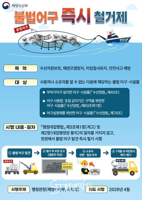 시 관계자는 “불법 어구 문제를 보다 주도적으로 해결하고, 해양환경 보호와 지속가능한 수산업을 위한 기반 마련에 큰 도움이 될 것”이라며 “어업인들을 대상으로 적극 홍보하겠으며, 많은 협조와 관심을 부탁드린다.”고 했다.