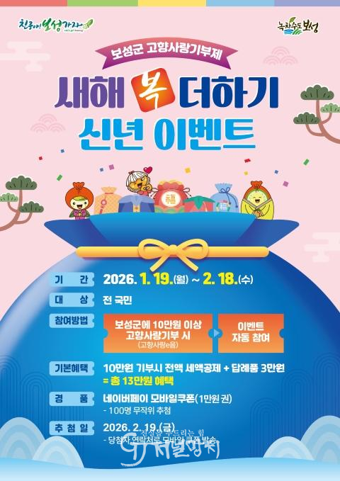 보성군 관계자는 “고향사랑기부제는 기부를 통해 지역 발전에 동참하면서 세액공제와 답례품 혜택까지 받을 수 있는 의미 있는 제도”라며 “새해를 맞아 많은 분들이 보성군을 응원하는 마음으로 참여해 주시기를 바란다.”고 했다.