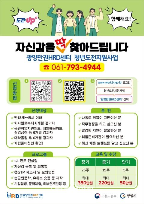 광양시 관계자는 “이번 청년도전지원사업이 취업 시장에서 멀어졌던 청년들에게 다시 한번 도전할 수 있는 계기가 되길 바란다. 프로그램 이수 후에도 국민취업지원제도, 일경험 사업 등 다양한 지원사업과 연계해 청년들이 안정적으로 취업에 성공할 수 있도록 적극 지원하겠다.”고 했다.