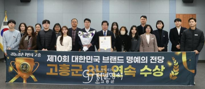 ‘대한민국 브랜드 명예의 전당’은 소비자 인지도, 브랜드 신뢰도, 사회적 가치 등을 종합적으로 평가하는 시상으로, 고흥군은 귀농귀촌 분야에서 장기간 안정적인 정책을 추진해 온 성과를 인정받아 정책의 지속성과 경쟁력을 다시 한번 입증했다.