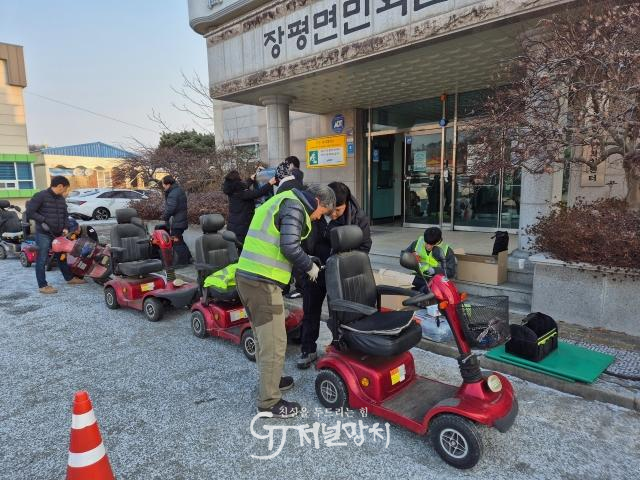 조명등 장착은 23일 장평면과 관산읍 일원에서 교통취약계층을 우선 대상으로 선정해 진행됐다.
