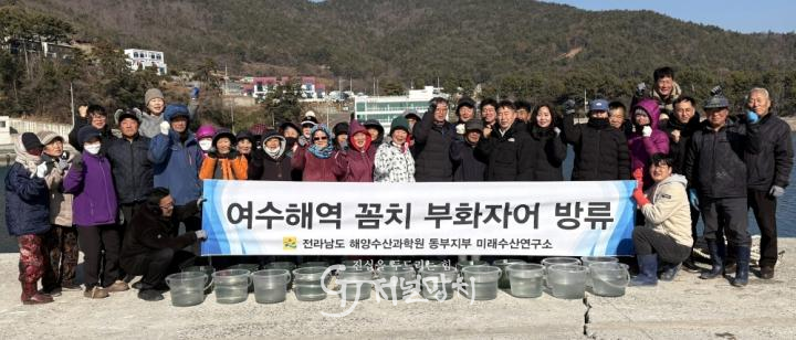 전남도해양수산과학원은 지난 20일을 시작으로 꼼치 부화자어 612만 마리를 바다로 보내는 방류를 성공적으로 마쳤다. 이어 27일에는 여수 돌산읍 두문포 선착장에서 어업인 등 30여 명이 참석한 가운데 835만 마리를 추가로 방류했다.