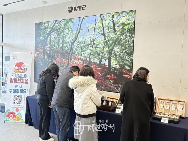 소비자는 홍보 테이블에서 상품을 직접 살펴본 후 온라인 함평천지몰에서 주문할 수 있다.