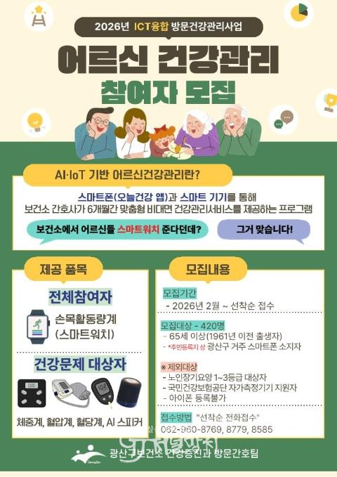 광산구 관계자는 “스마트 기술을 활용해 어르신이 건강한 생활 습관을 형성하고 만성질환을 관리할 수 있도록 돕겠다. 어르신들이 자가건강관리 역량을 강화해 건강한 노후를 보낼 수 있도록 최선을 다하겠다.”고 했다.