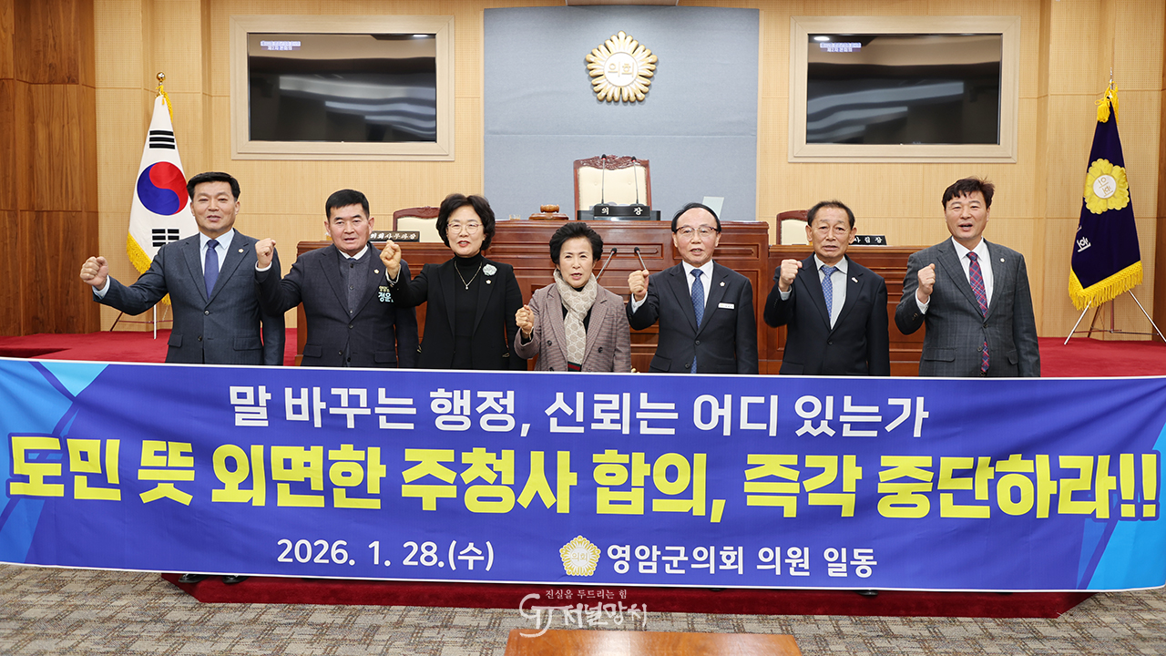영암군의회가 광주·전남 행정통합 논의에서 주청사를 현 전라남도청 소재지(무안)로 명확히 확정할 것을 촉구했다. 최근 청사 위치를 둘러싼 갈등이 불거진 가운데 전남 기초의회 차원에서 입장을 공식화한 것이다.