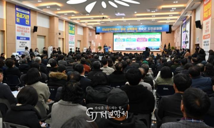 김영록 도지사는 “화순군은 광주광역시에 인접해 있고, 빠른 속도로 발전하고 있는 지역이다. 전남광주 통합을 통해 화순군은 더 새롭고 더 크게 발전할 수 있는 국면을 맞이하고 있다. 과거 굴뚝산업 시대에는 영남이 빠르게 발전했지만, 오늘날 AI·에너지 시대에는 광주전남이 다시 한 번 대한민국을 선도하는 첨단 산업 지역으로 다시 태어날 수 있다.”고 했다.