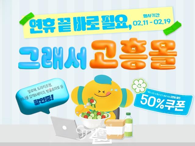 고흥몰은 오는 2월 11일부터 19일까지 9일간 「연휴 끝 바로 필요, 그래서 고흥몰」 기획전을 열고 알로에, 도라지청, 취나물 셰이크 등 건강 먹거리를 최대 50% 할인 판매한다고 밝혔다.